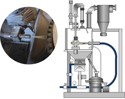 There are 2 types by different abrasive acceleration system.