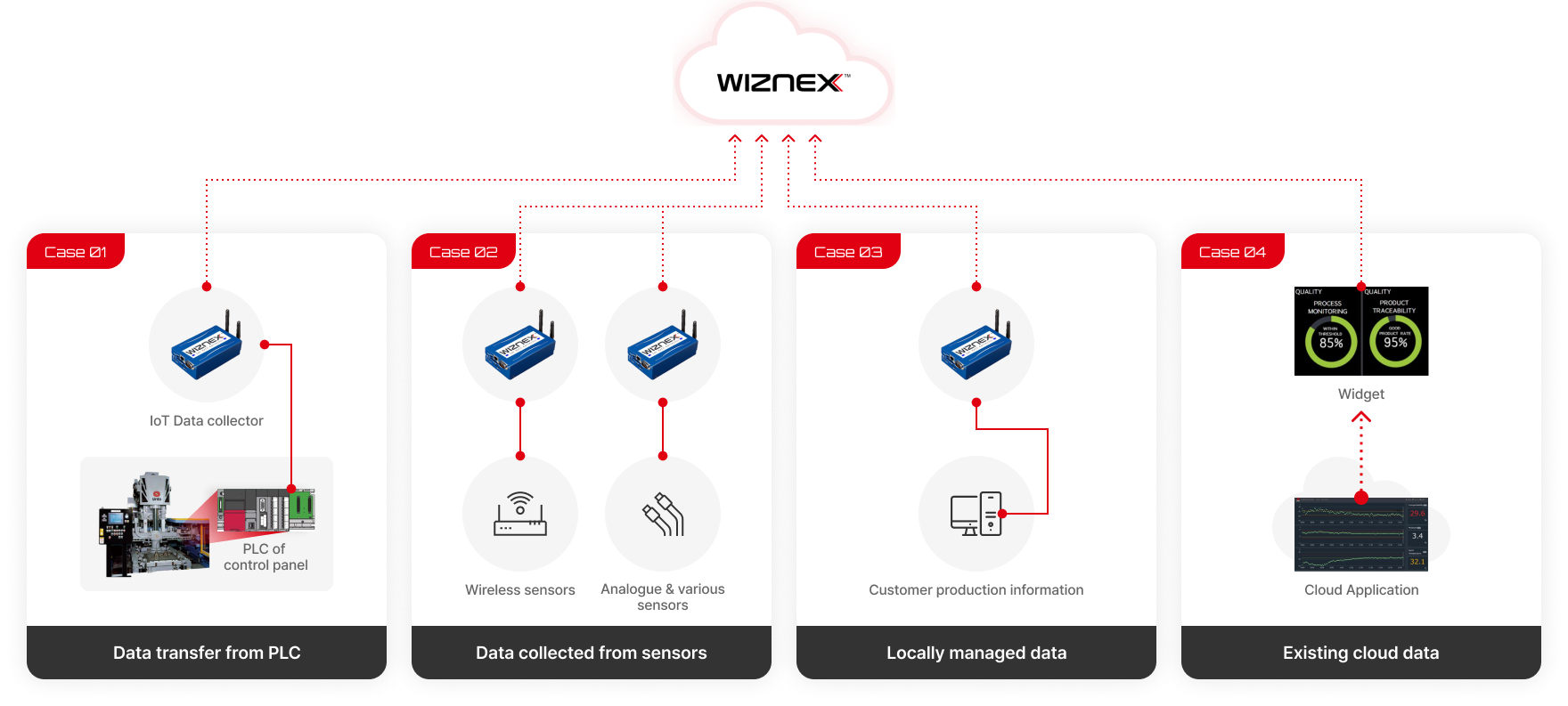 WIZNEX™ is a cloud-based IoT solution through an array of IoT applications. Production can be monitored from anywhere.