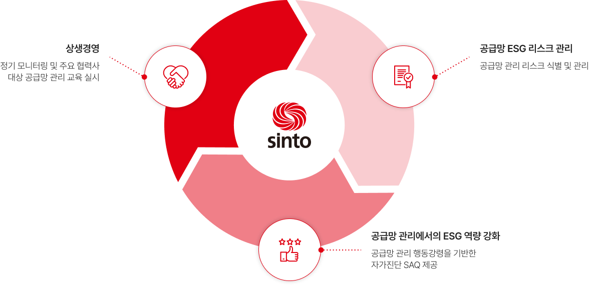 동아쏘시오그룹은 협력사와 함께 변화하는 생태계에 적응하여 사회적 책임을 다하고 함께 성장하기 위해 지속가능한 공급망을 구축할 것입니다.