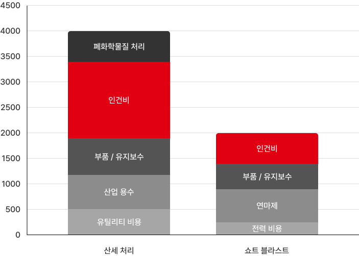 쇼트브라스트 도입해서 설명한 문제를 해결할 수 있습니다
