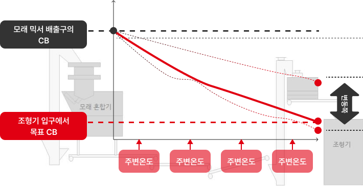 모래 특성은 믹서에서 조형기로 이동하는 동안 외부 요인에 의해 변화합니다;