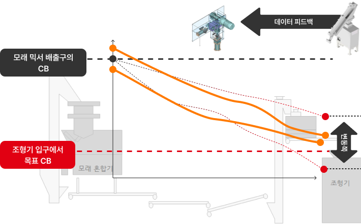 조형기에서 얻은 데이터에 따라 믹서의 설정을 변경하여 성형기에서 얻은 데이터에 따라