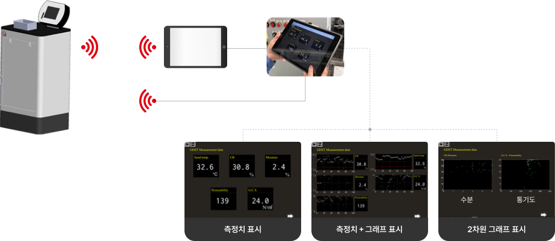 IDST는 5가지 모래 속성을 자동으로 측정합니다